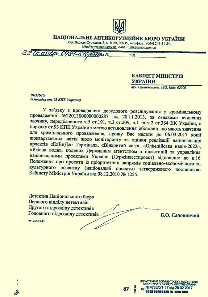 Кроме того, по результатам досудебного расследования уголовного производства по факту завладения и растраты средств на общую сумму 127 млн. гривен, выделенных на реализацию национального проекта "Воздушный экспресс" Специализированной антикоррупционной прокуратурой 11.04.2017 был направлен обвинительный акт в Киево-Святошинский районного суд Киевской области для рассмотрения по существу.