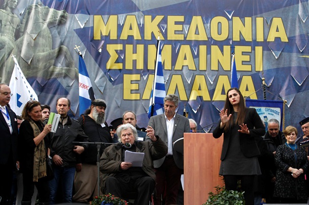 Сотни тысяч греков заполнили центральную площадь столицы Синтагма и прилегающие улицы с плакатами, транспарантами и греческими флагами. При этом много людей приехали в национальных костюмах греческой провинции Македония.