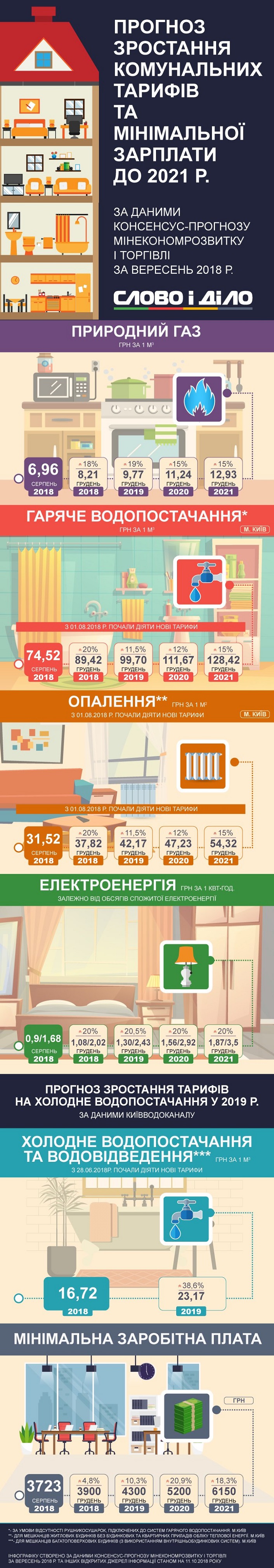 При этом вместе с минималкой прогнозируют значительный рост тарифов. С 1 августа украинцы стали платить за горячую воду 74,52 гривны за кубометр. До 2021 года эта цена может возрасти почти в два раза – до 128,42 гривны.