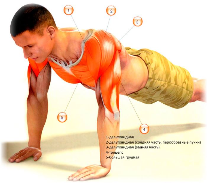 — Отжимания от пола: 4 подхода по 10-12 раз.
