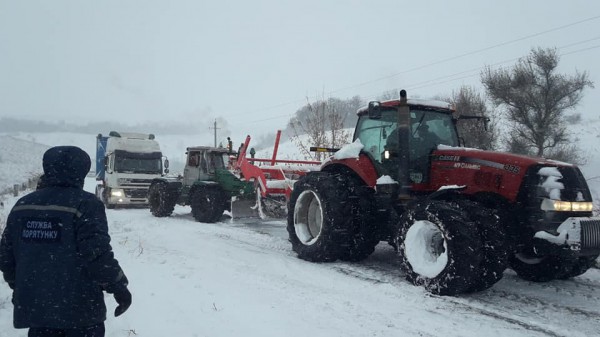 Спасать приходится как легковые, так и грузовые автомобили - их буксирами вытаскивают на очищенные части дорог.