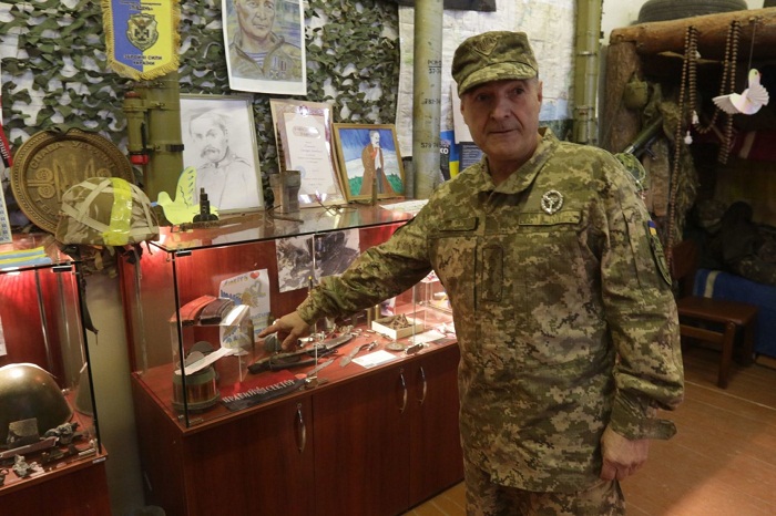 Власне, це три експозиції під однією назвою, присвячені, відповідно, подіям війни в Донбасі, Майдану та Голодомору. Кожна зала насичена експонатами, які Ушинський збирав власноруч – від предметів селянського побуту 1910-30-х років до кулемета «Максим» часів Другої Світової, який «приймав участь» в АТО, й відтвореного бліндажа зразку кампанії 2014-15 років: з працюючою буржуйкою, стінами з товстих колод та нехитрим солдатським посудом.