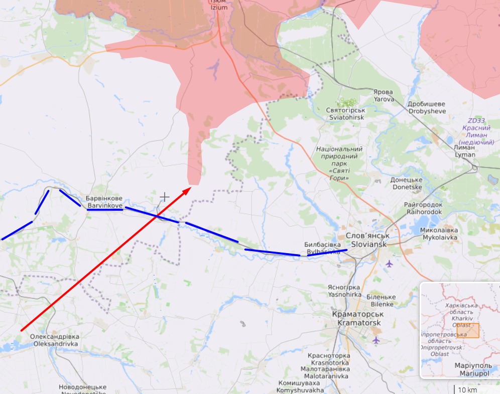 Як би мені не хотілося, не можу повірити ані у те, що це просто розвідувальні підрозділи, ані у те, що вони знайшли прогалину в обороні. Можете сперечатися, але у це складно повірити також тому, що дворніков досі не робив нічого, крім лобових атак. Зрештою, усе вказує на те, що армія рф прорвала українську оборону на південь від Ізюма та просунулася щонайменше на 10 км: тепер виникає загроза відрізання дорожного сполучення між Барвінковим та Слов’янськом.
