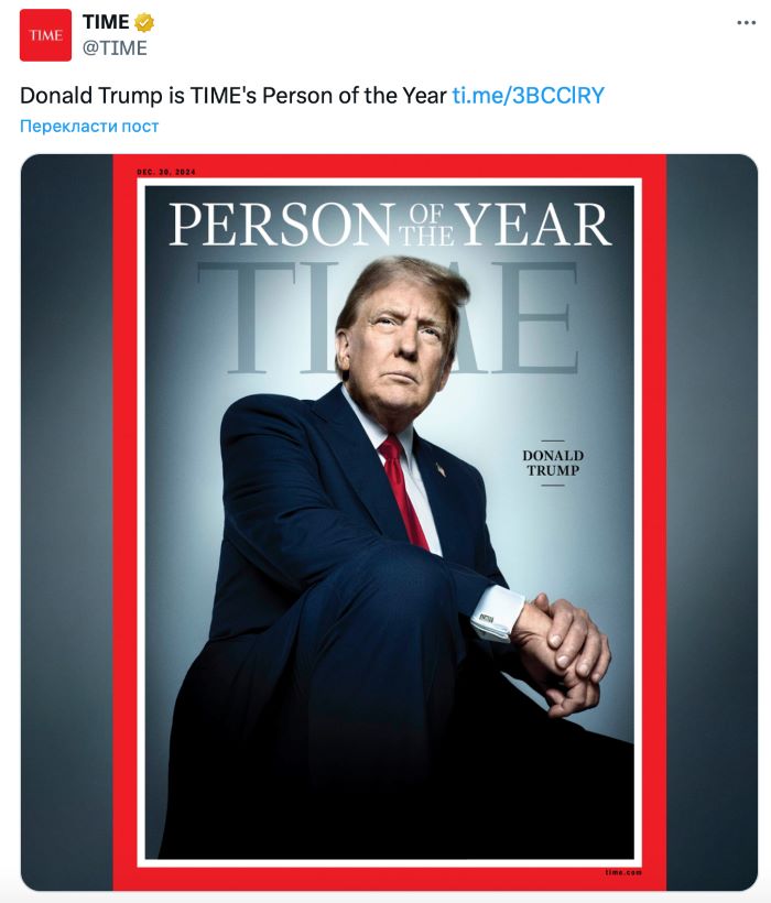 Нагадаємо, що Трамп вже не вперше стає людиною року за версією Time. Попереднього разу це сталося 2016 року.