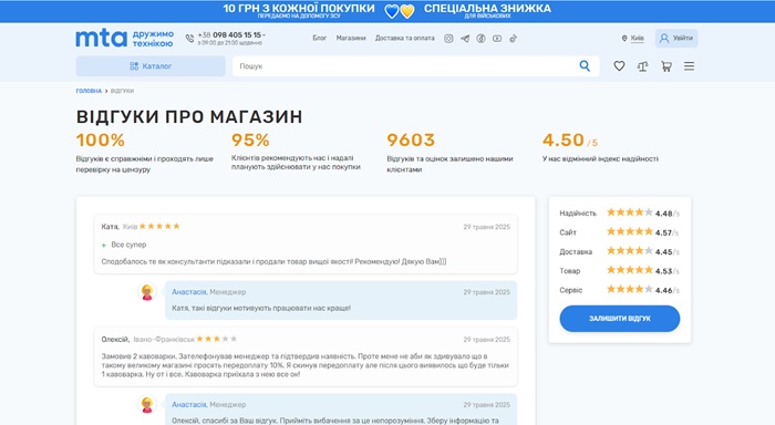 Рейтинг и отзывы о интернет-магазине МТА