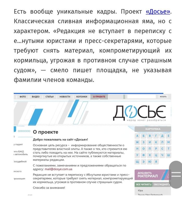 Є взагалі унікальні кадри. Проект «Досье». Класична зливна інформаційна яма, але з характером.