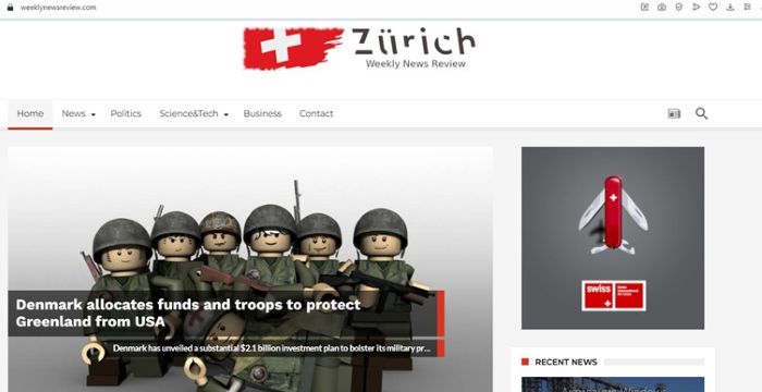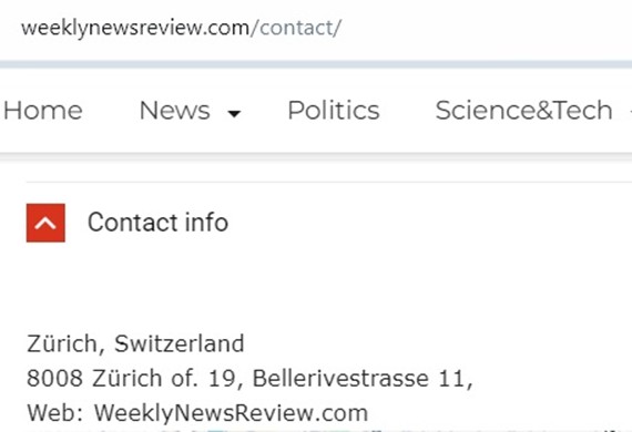 Ще одним яскравим прикладом є сайт Weekly News Review (WeeklyNewsReview.com). Згідно з його описом, це незалежний міжнародний ресурс новин, що висвітлює світові події з офісу в Цюріху. Однак, подана інформація є вкрай односторонньою, а спроби її перевірки викликають серйозні побоювання.