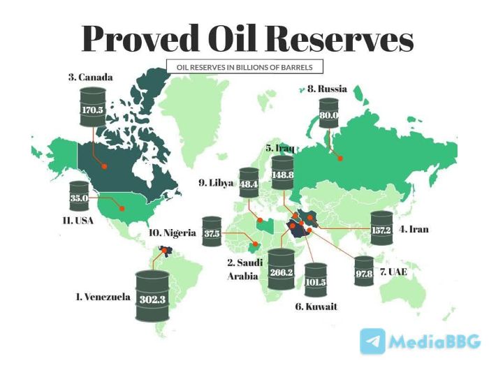 Венесуела на кінець 2025 року мала найбільші доведені запаси нафти у світі. Пишн Мінфін. Про це повідомляють Контракти.UA.