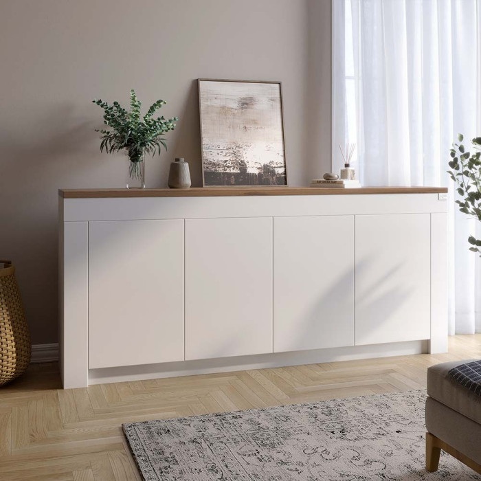 Коли у вітальні треба не лише поставити техніку, а й сховати пледи, настільні ігри, документи або зарядні станції, логічно дивитися в бік комодів. Але тут є нюанс: глибокі шухляди зручні для речей, проте для техніки потрібні ніші з доступом повітря й місцем під кабелі. Тому найпрактичніший формат — комбінована конструкція: частина з шухлядами під «побутове», частина — з відкритими або напіввідкритими секціями під пристрої.
