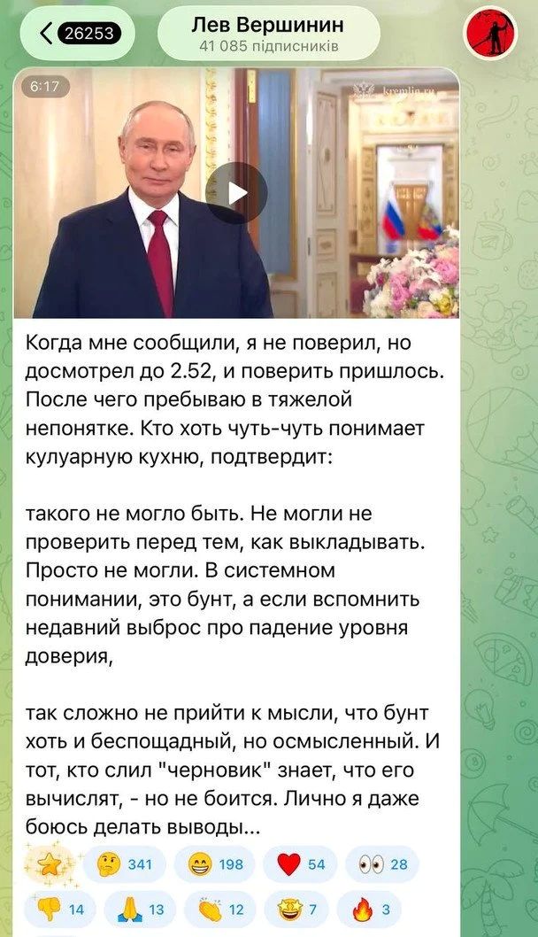 У NEXTA переконані, що пропагандисти підставили Путіна, випадково «зливши» невідредаговане відео з привітанням.