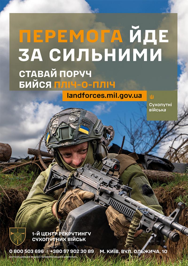 Найчисленніший підрозділ, що здійснює набір у Сухопутні війська України, – це 1 Центр рекрутингу, розташований у Києві. Його фахівці, які самі мають бойовий досвід, допомагають кандидатам знайти відповідну вакансію та військову частину, враховуючи їхній цивільний досвід, навички та бажання.
