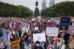 Одна з претензій організаторів протесту стосується проведення помпезного військового параду у Вашингтоні. У суботу, 14 червня, коли президент США Дональд Трамп святкує своє 79-річчя, десятки тисяч американців вийшли на акції протесту під гаслом «Без королів». Люди протестують проти авторитарної політики американського лідера та його спроб поставити себе вище закону. Одна з претензій організаторів протесту стосується проведення помпезного військового параду у Вашингтоні, який вони розцінюють як марнотратну забаганку Трампа. Пише ТСН. Про це повідомляють Контракти.UA. Про це повідомляє Reuters. Мітинги на знак протесту проти агресивної політики Трампа відбулися у великих містах від Нью-Йорка до Атланти та Лос-Анджелеса. Ці протести стали найбільшим виявом опозиції до американського лідера з моменту його повернення до влади в січні цього року та відбулися того ж дня, коли тисячі військовослужбовців та військової техніки пройдуть маршем на параді, який офіційно приурочений до 250-річчя армії США, а неофіційно вважається подарунком до дня народження Трампа. Люди, які прямували до Вашингтона на парад, зіткнулися з масивною присутністю охорони: близько 30 км чорної огорожі заввишки 2,4 м, більша частина якої була посилена бетонними дорожніми бар’єрами, що оточувала вулиці та навколишні пам’ятки, включаючи Монумент Вашингтона. Як повідомили агентству Reuters офіційні особи США, святкування коштуватимуть армії США від 25 до 45 мільйонів доларів. Це включає сам парад, а також витрати на перевезення обладнання, житло та харчування військовослужбовців. Критики назвали парад авторитарною демонстрацією влади, яка є марнотратною, особливо враховуючи заяви Трампа про бажання скоротити витрати в усьому федеральному уряді. Антитрампівські групи запланували майже 2000 демонстрацій різного масштабу по всій країні. Особлива атмосфера панувала в Лос-Анджелесі, куди через протести проти мігрантської політики Трамп скерував війська Національної гвардії та морську піхоту США. Лос-Анджелес є столицей штату, який голосує за демократів. Розгортання військ у місті губернатор Каліфорнії Гевін Ньюсом оскаржив у суді. Перед мерією Лос-Анджелеса сотні людей зібралися ще за годину до початку основного протесту «Без королів». Натовп оживляв барабанний гурт із танцюристами корінних американців, десятки людей розмахували американськими та мексиканськими прапорами на тлі посиленої присутності правоохоронців. У Вашингтоні протестують невеликі групи людей з плакатами із написами, зокрема «Війська пошани (не Трампу)», «Без королів» та «Без королів з 1776 року». Принаймні одна організація має дозвіл на проведення маршу в центрі Вашингтона, який завершиться мітингом навпроти Білого дому. Трамп застеріг людей від протестів на самому параді, заявивши, що «їх зустрінуть дуже великою силою». Члени ультраправої групи Proud Boys з’явилися на протесті «Без королів» в Атланті, одягнені в характерні чорно-жовті кольори групи. Протести та будь-яка реакція правоохоронних органів створять контрастний фон для цілоденного святкування історії армії США, яке має на меті вшанувати різні епохи військової історії за допомогою уніформи та військової зброї з тих періодів. Нагадаємо, раніше з’явилися припущення, що помпезний військовий п