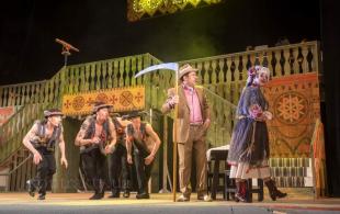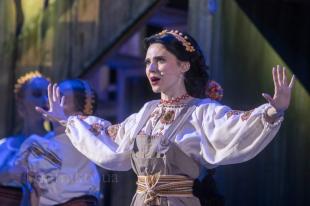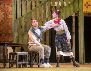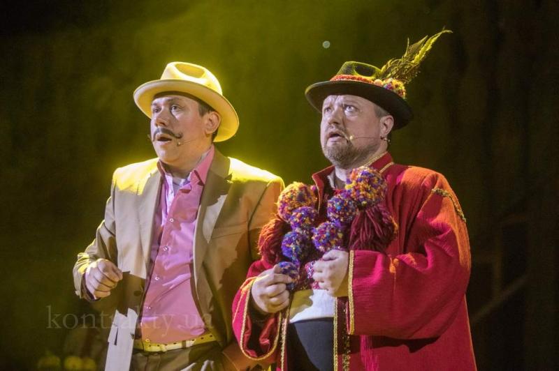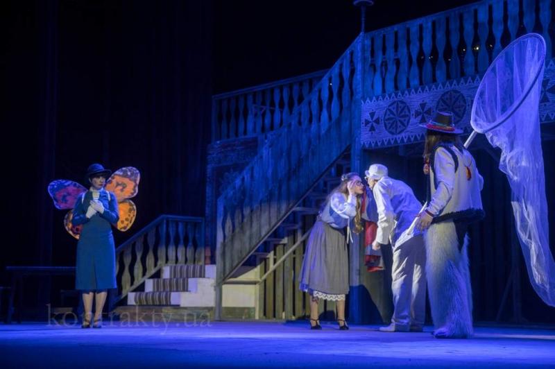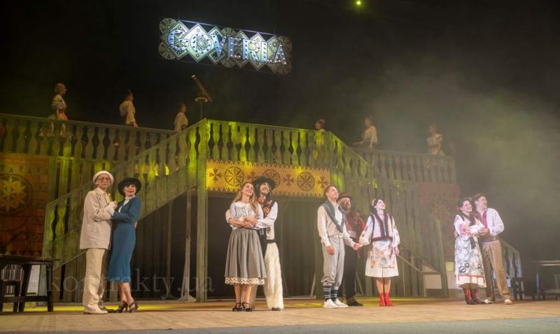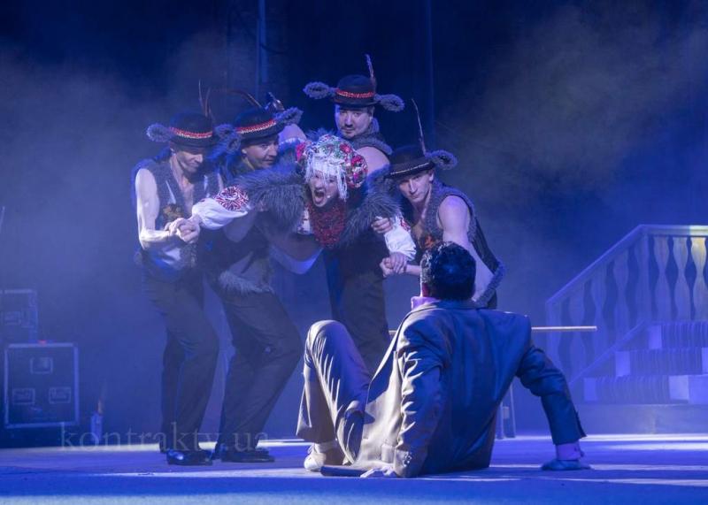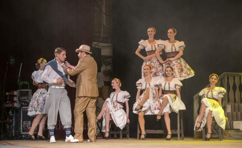 Такі слова перед початком постановки промовив зі сцени її режисер Віталій Сініков. А йшлося про популярну в українських театрах оперету «Гуцулка Ксеня». Виросла вона з однойменної пісні, хіту на всі часи, і саме за мотивами цієї оперети у 2019 році було знято фільм, що став подією у вітчизняному кінематографі. Але ж твір від початку театральний, він йде на різних сценах і трактується досить вільно. Своє бачення «Гуцулки Ксені» столичному глядачеві запропонував Одеський академічний театр музичної комедії імені Михайла Водяного 11 червня на сцені Міжнародного центру культури і мистецтв Федерації профспілок України (Жовтневого палацу). З шістнадцятьма акторами, з майже двома десятками танцюристів і навіть з оркестром у десять осіб. Бенд розмістили не в ямі, а на другому ярусі чи пак довжелезному балконі над сценою. Музиканти хоча і не виходили наперед, були учасниками подій, оскільки все починається в готелі «Говерля» (вивіска, що світилася над балконом — Goverla), а чому б у готелі не бути оркестру? І вже надалі музики органічно лишалися частиною вистави. Оперети чи мюзиклу? На сторінці Тетру музкомедії, що присвячений виставі, вказано ще точніше: фолк-мюзикл. Офіційна дата створення — 1938 рік, Станіслав (нині — Івано-Франківськ). Мюзикл як жанр тільки-но сформувався. У Сполучених Штатах. Тобто вплинути безпосередньо на Ярослава Барнича, автора музики та лібрето, він не міг. Але на нього точно вплинули класична та нововіденська оперети, бо таких вистав чимало поставив сам Барнич. Вокальні партії в його виставі не надто складні, але вони все ж таки для співаків з академічною школою. Яку, до речі, демонстрували одесити. Танці, парні та групові, якими часто закінчуються вокальні номери, а також великі танцювальні номери з кількома учасниками, простий сюжет (а хіба складна драматургія в творах Й.Штрауса чи І.Кальмана?), щасливий фінал, однозначні та обов’язкові персонажі — герой, простак, т.п. — це все є риси оперети. До речі, комічний персонаж — професор Зілинський, не просто ентомолог, а лепідоптеролог, тобто вчений, який вивчає метеликів, костюмом та поведінкою «ботаніка» дуже схожий на персонажа з відомого фільму польського режисера Юліуша Махульскього «Дежа вю», який, за дивним збігом, знімався в Одесі. Але значно пізніше за виставу — наприкінці 80-их років минулого сторіччя. А можливо, прообразом Зілинського був Бенедикт з книги француза Жюля Верна «П'ятнадцятирічний капітан», також ентомолог і теж одинак. Скоріш за все, таким є архетип вченого, який цілком занурений у свою, геть незрозумілу нормальним людям справу і не дуже цікавиться реальністю. І, як і повинно бути за правилами оперети, персонаж простак у виконанні Андрія Мирошниченка голосу не має, проте співає дуже душевно. Але. У справді гуцульский музичний колорит внесений дуже популярний на момент створення п’єси жанр — танго. Власне, лейтмотив вистави — пісня «Гуцулка Ксеня», що була створена задовго до оперети — то є танго. І тут вже проступають риси мюзиклу, одна з них — здатність легко приймати нові музичні стилі. В США це був насамперед джаз. Так от, аранжування для цієї постановки виконав відомий одеський джазовий піаніст та композитор Олексій Петухов. І оркестр теж має естрадно-джазовий склад. А от виконання пісні «Гуцулка Ксеня» Марічкою (актриса Ірина Ковальська) — прям