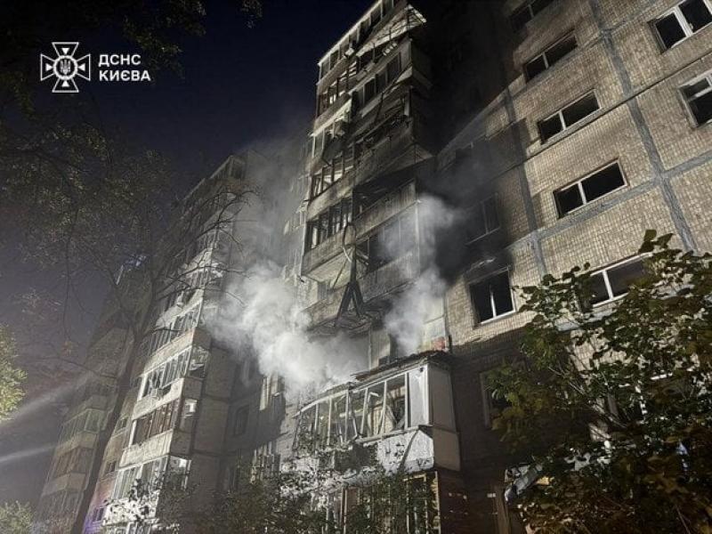 Росіяни влаштували терор Києву. Комбінований масований удар дронами та ракетами по столиці тривав майже 12 годин. У Києві внаслідок чергової атаки Росії сталося займання в урядовій будівлі. Пожежа виникла у будівлі Кабінету міністрів. На місці працюють рятувальники. Пише ТСН. Про це повідомляють Контракти.UA. За попередньою інформацією, двоє загиблих — молода жінка та дитина віком до 1 року. Повітряна тривога лунала в Києві від вечора суботи з невеликими перервами усю ніч. Спочатку росіяни атакували українську столицю дронами з кількох напрямків, а під ранок тривогу було поновлено через застосування ракет. Яка ситуація у районах 7 вересня У Святошинському районі пошкоджено кілька багатоповерхівок. У дев’ятиповерховому будинку сталася пожежа з шостого по девʼятий поверхи та часткове руйнування перекриттів, в іншому — займання на верхніх поверхах, ще в одному — пожежа на третьому поверсі. Також знищені ангар та автомобілі, повідомили рятувальники. У Дарницькому районі зафіксували влучання у чотириповерховий житловий будинок — там виникла пожежа на двох поверхах та є часткове руйнування. За даними Повітряних сил України, російські війська атакували Україну понад 800 дронами та 13 ракетами — є влучання на 37 локаціях.