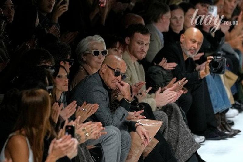 Під час показу колекції весна-літо 2026 року актори сиділи в першому ряду. Річ у тім, що зараз триває виробництво сиквела картини, і частину матеріалу творці фільму вирішили відзняти на справжньому модному показі.