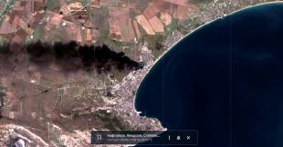 У тимчасово окупованому Криму, у Феодосії, триває пожежа на нафтоналивному терміналі в порту після удару безпілотників в ніч на 6 жовтня. Про це пише РБК-Україна з посиланням на "Радіо Свобода". Про це повідомляють Контракти.UA. На знімках супутників за 6 жовтня видно дим від палаючої нафтобази, який простягається на 12 кілометрів. Варто зауважити, що даний нафтоналивний термінал раніше вже піддавався атакам - у жовтні 2024 року. Він є найбільшим у Криму, з пропускною спроможністю 12 мільйонів тонн нафтопродуктів на рік і ємностями для одночасного зберігання 250 тисяч тонн продукції. Удари по терміналу у Феодосії Нагадаємо, що в ніч на 6 жовтня Сили оборони уразили потужності Морського нафтового терміналу у тимчасово окупованій Феодосії у Криму. За даними Генштабу, це багатофункціональний комплекс з перевалки нафти і нафтопродуктів між залізничними вагонами-цистернами, морськими суднами та автомобільним транспортом, який використовувався для забезпечення окупаційної армії. Після влучання на території терміналу почалася масштабна пожежа.