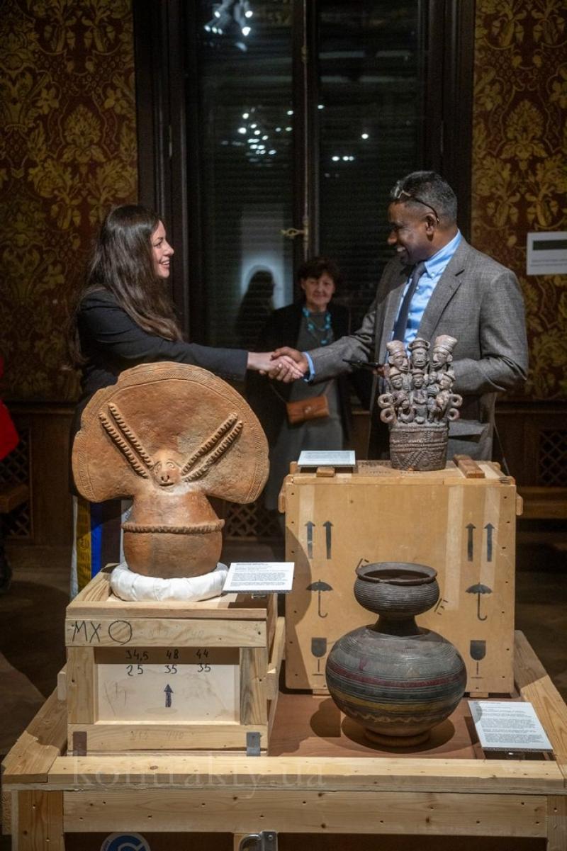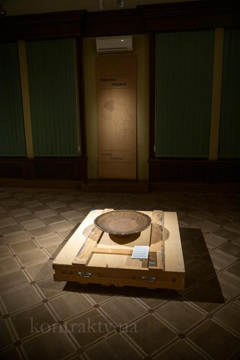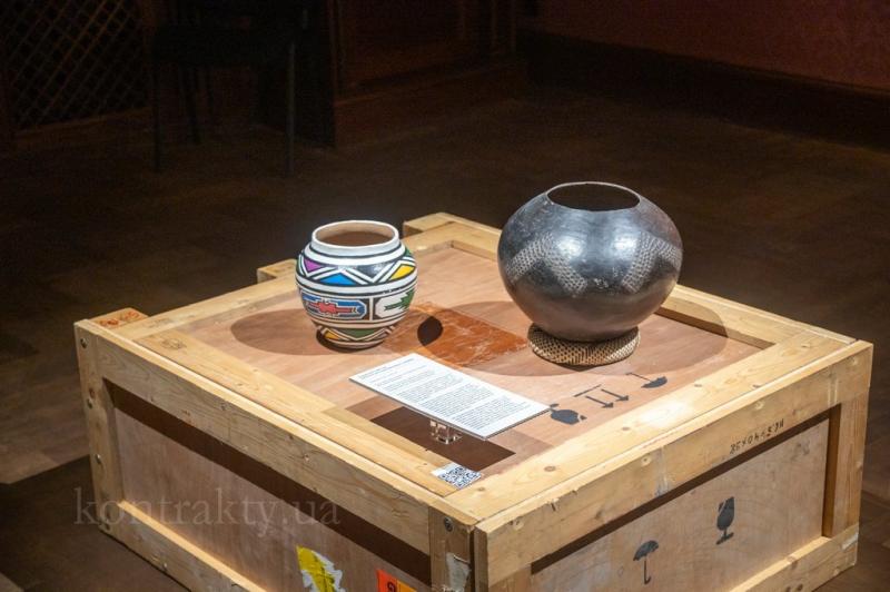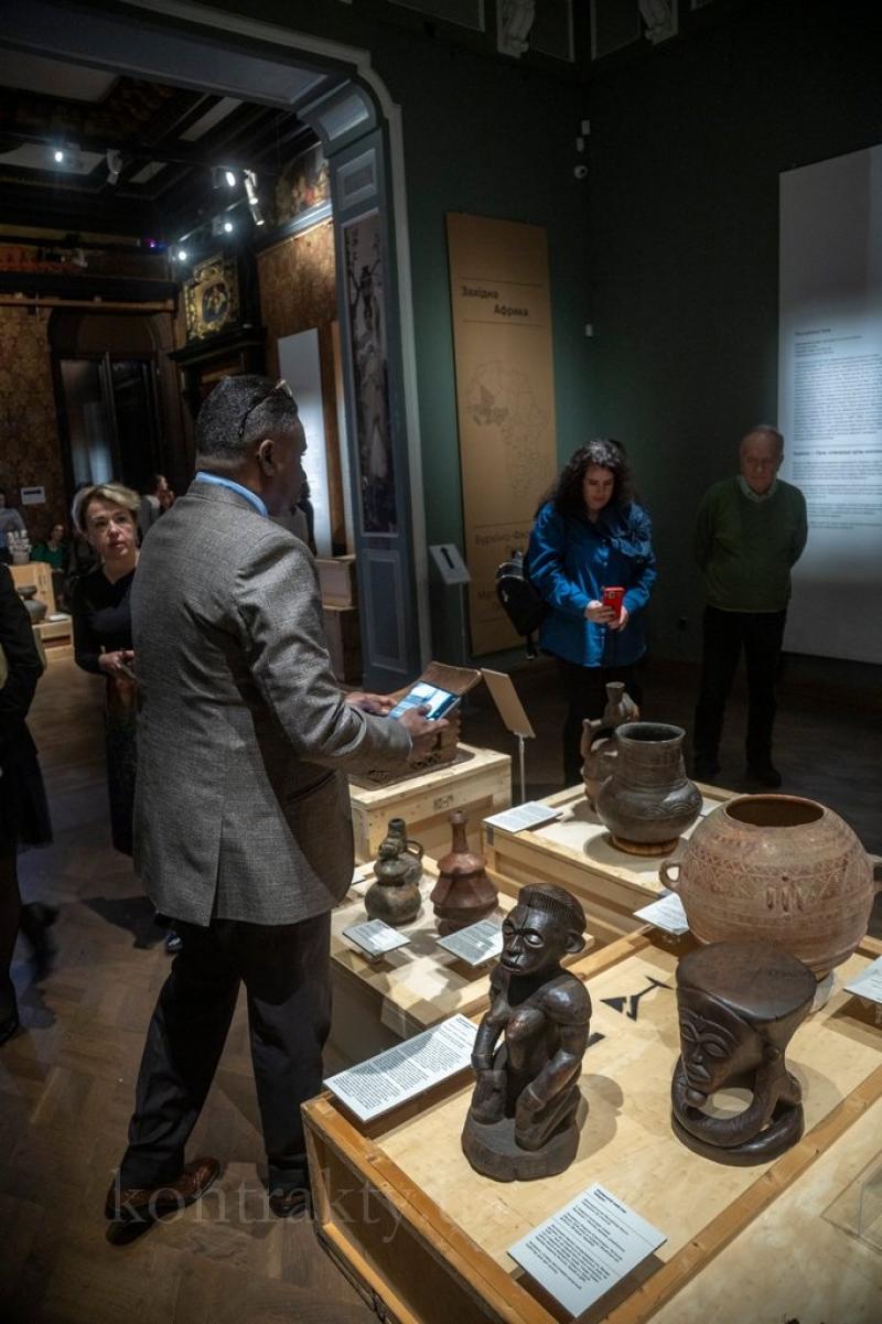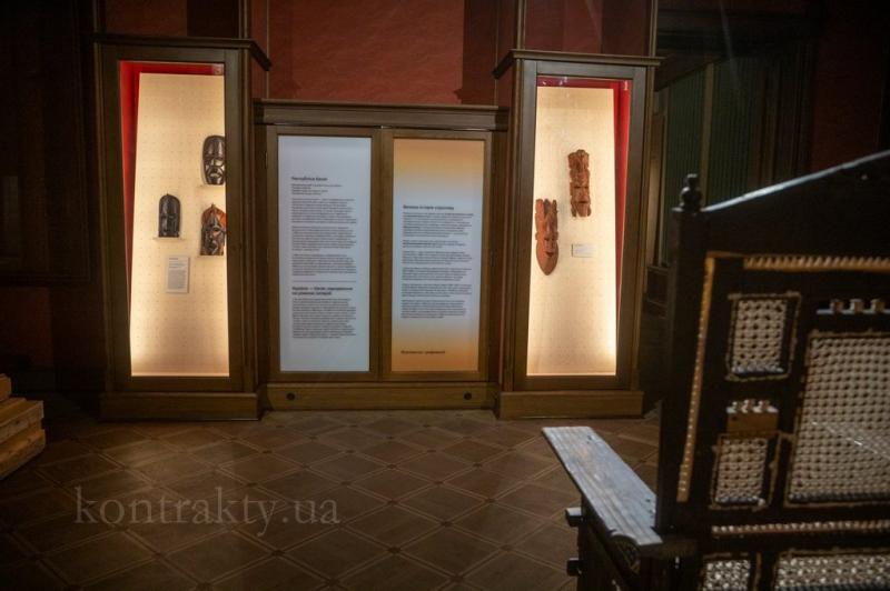 Це півсотні артефактів з двох десятків країн переважно Чорної або ж Субсахарської Африки: гончарні вироби, маски, фігурки, холодна зброя, парадне крісло, багато іншого. Експозиція доповнюється книгами різних років, що розказують про Африку, а текстові матеріали на стінах дозволяють краще зрозуміти контекст.