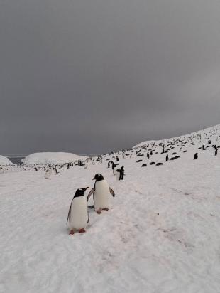 Раніше пінгвіни спостерігалися на станції у липні. Налічувалося десятки птахів.