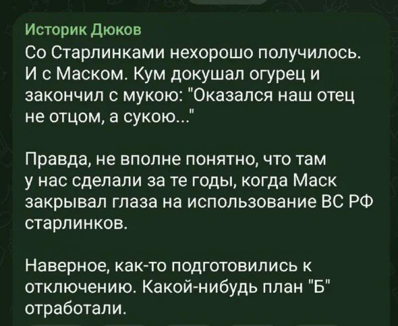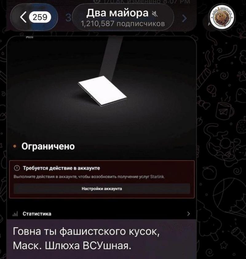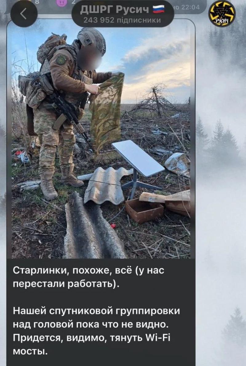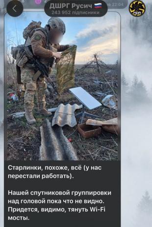 Telegram-канал Insaider пише про те, що заблоковано 550 тисяч станцій Starlink у ЗС РФ, та наводить скриншоти російських вояків.