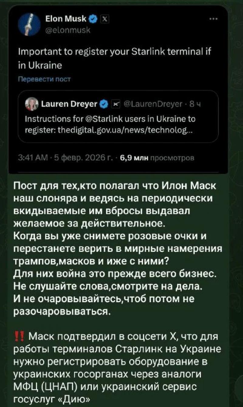 Як відомо, Starlink від SpaceX відіграє ключову роль у забезпеченні зв’язку для України під час війни. Раніше мережа використовувалася для оперативного управління комунікаціями та підтримки безпеки на передовій. 05.02.2026 — 7 — 506