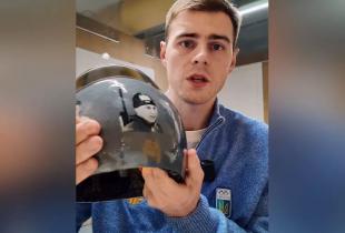 "На його шоломі – портрети наших атлетів, яких убила Росія. Фігуриста Дмитра Шарпара, який загинув у боях під Бахмутом, 19-річного біатлоніста Євгена Малишева, якого вбили окупанти поблизу Харкова, та інших наших спортсменів, яких російська війна позбавила життя.