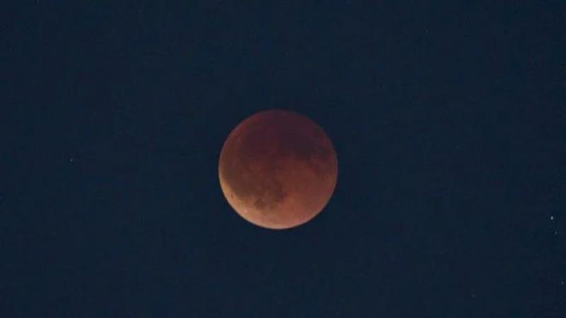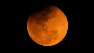 Через заломлення світла в атмосфері Землі Місяць набув рідкісного іржаво-червоного відтінку.