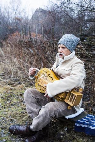 Слева направо: Иван Жогло альт, вокал, Олесь Коваль колесная лира, вокал, Антон Лубий барабан, вокал, Гордий Старух гитара, вокал, группа «Йорий Клоц»