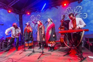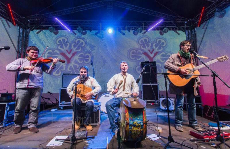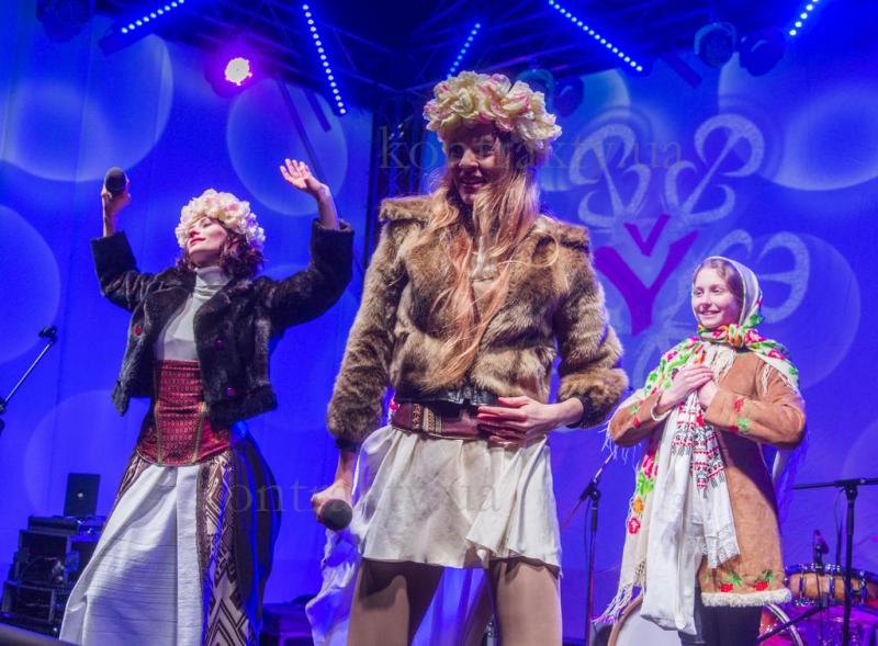 Слева направо: Мария Кудрявцева, Ганна Архипчук, Сусанна Карпенко вокал, Константин Бушинский ударные, группа «Чоботи з Бугая» Слева направо: Сергей Охримчук скрипка, Мария Кудрявцева, Ганна Архипчук, Сусанна Карпенко вокал, группа «Чоботи з Бугая»